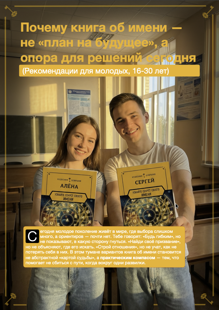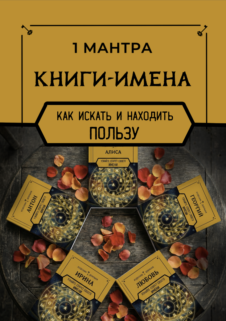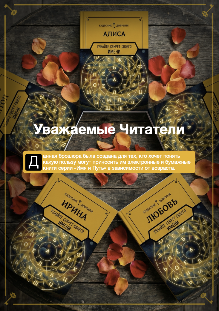 Большие исследования имен "Имя и Путь" можно заказать дополнительно на нашем сайте. Доставляются они в виде PDF-файлов (открываются на любом устройстве), как 60-страничные документы. Потихоньку они выходят в качестве бумажных книг, которые можно приобрести на Wildberries и Ozon.